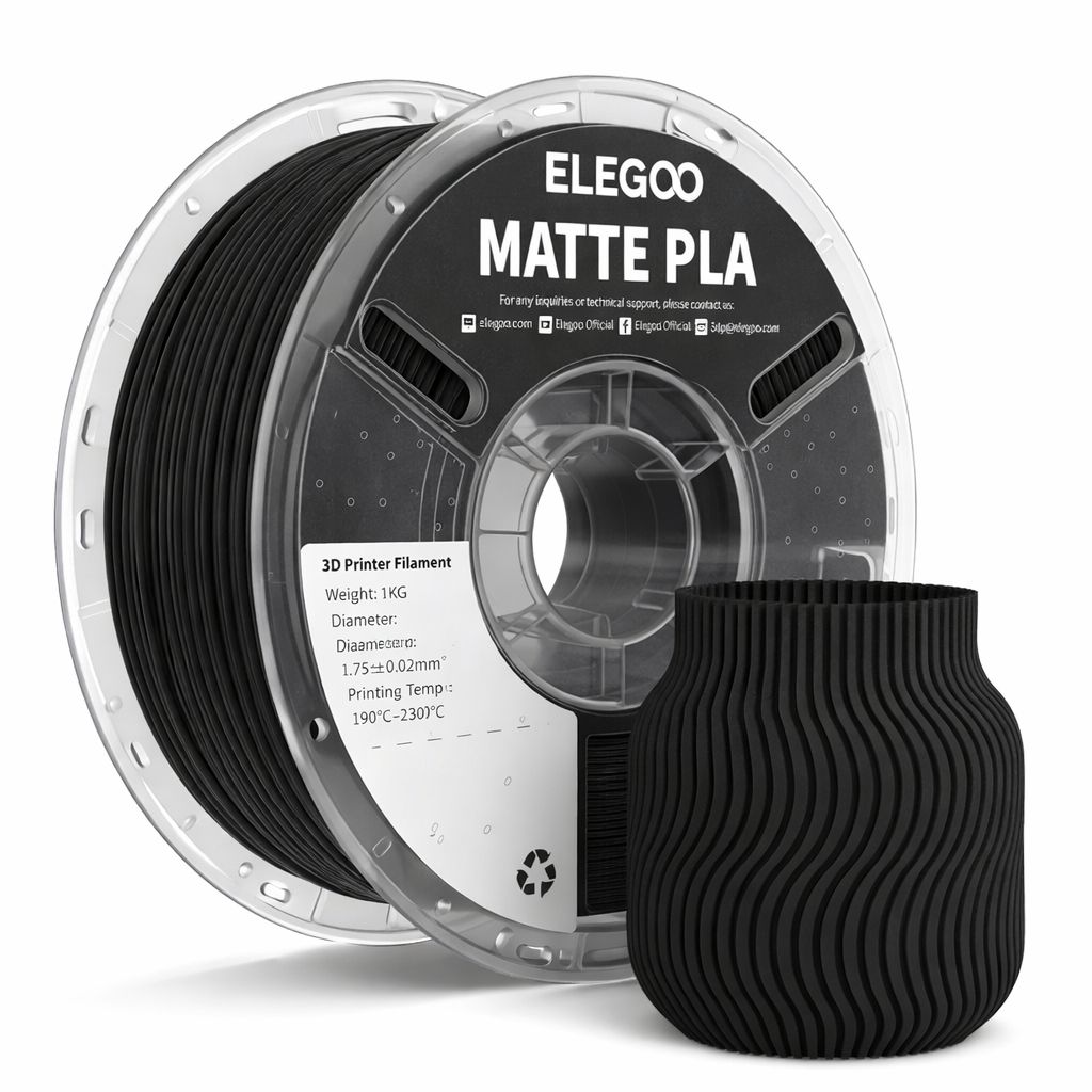 FILAMENTO ELEGOO PLA MATTE-1.75mm-1KG-NEGRO MATTE (BOBINA PLASTICA)