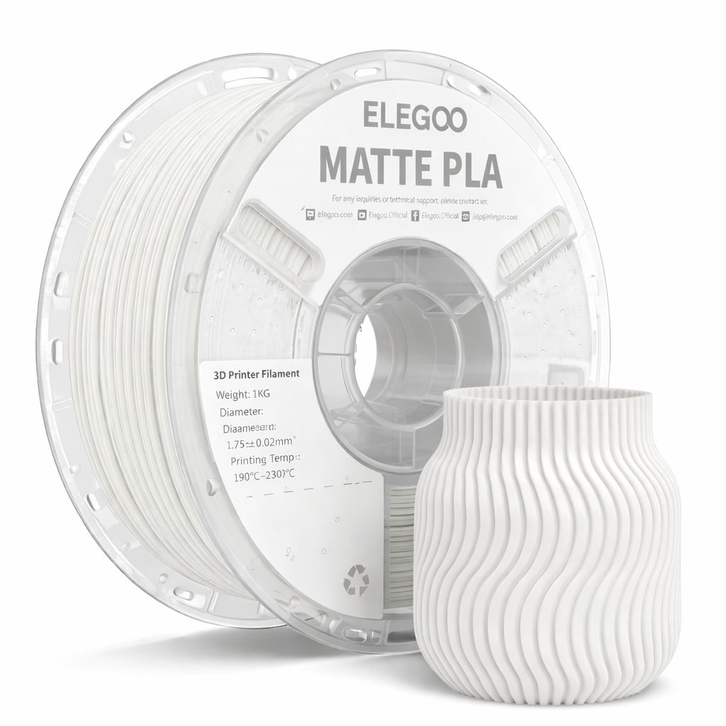 FILAMENTO ELEGOO PLA MATTE-1.75mm-1KG- BLANCO MATTE (BOBINA PLASTICA)