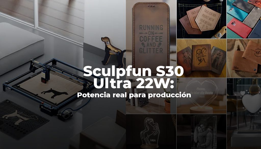 La Sculpfun S30 Ultra 22W es una grabadora y cortadora láser de alta potencia, pensada para usuarios que necesitan mayor rendimiento, precisión y velocidad.