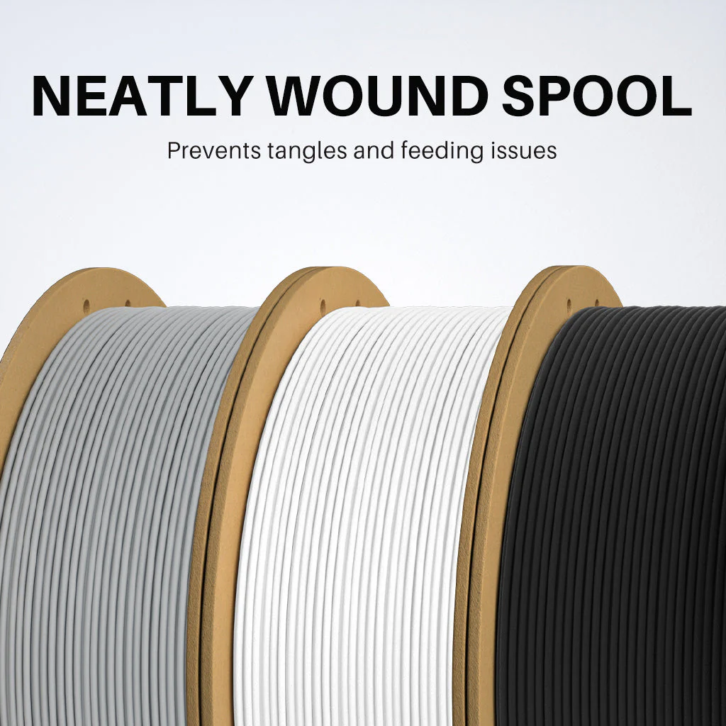 • Carrete de cartón ecológico: Entendemos la importancia de la sostenibilidad. Por eso, todos nuestros PLA mate vienen con una bobina de cartón ecológica que se degrada más rápido que las bobinas de plástico. El carrete cuenta con tres orificios de visualización para observar fácilmente el filamento restante y reemplazarlo a tiempo.