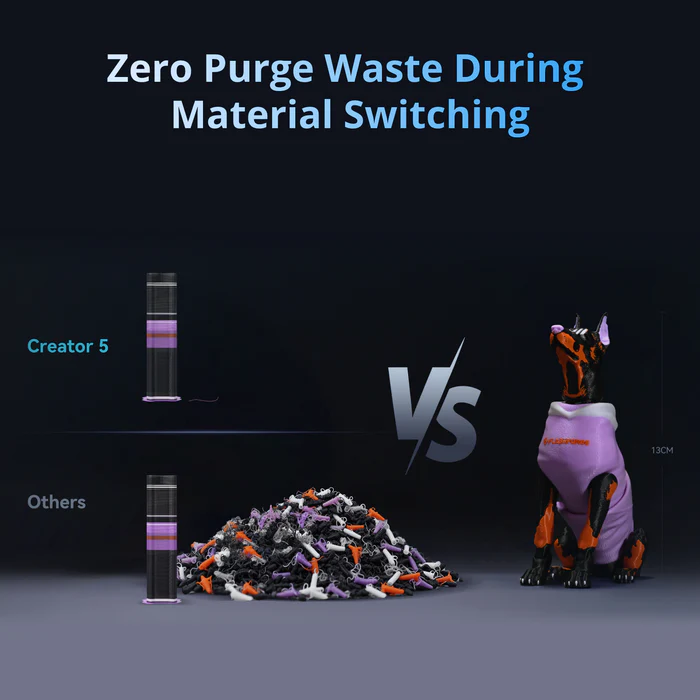 Elegir la Creator 5 significa invertir en eficiencia, fiabilidad y versatilidad. Su capacidad de trabajar con múltiples materiales, velocidad de impresión superior, volumen de construcción amplio y tecnologías inteligentes la posicionan como la impresora 3D definitiva para quienes buscan maximizar productividad, minimizar desperdicios y lograr resultados profesionales en cada proyecto. Es la opción perfecta para profesionales del diseño, educación, makerspaces y empresas que necesitan una impresora 3D de alto rendimiento con resultados garantizados.