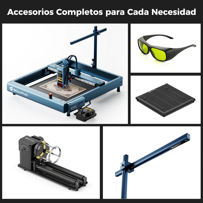 - Láser de clase 4 (estándar para láseres de alta potencia), con gafas de seguridad incluidas.